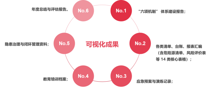 可視化成果交付:服務(wù)期滿后,交付 6 大類標(biāo)準(zhǔn)化成果,形成機制落地的 “全證據(jù)鏈”: